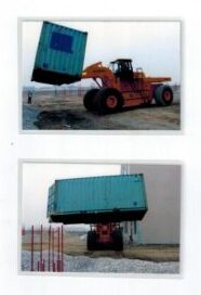 Self-developed 35 tons forklift loader, adopting patented technology of rear-wheel steering and rollover protection to solving the safety problem in the transportation of large materials. It was the largest forklift loader in the market at that time.