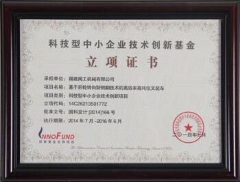 The rear-wheel-turning high-tonnage forklift loader was established by the Ministry of Science and Technology and the Ministry of Finance as the “Science and Technology SME Technology Innovation Fund Project”.
