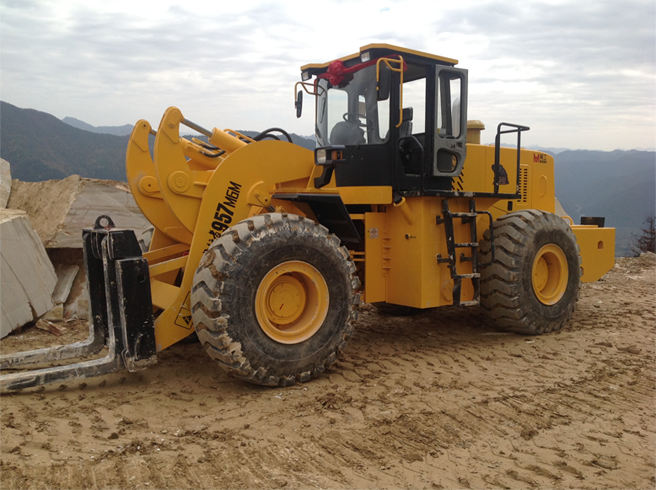 • By virtue of past experiences, MinGong designs forklift loader horizontal frame especially for stone industry, which is made of thickened steel plate and has load & torsion resistance and overall firmness to adapt to various severe working conditions.